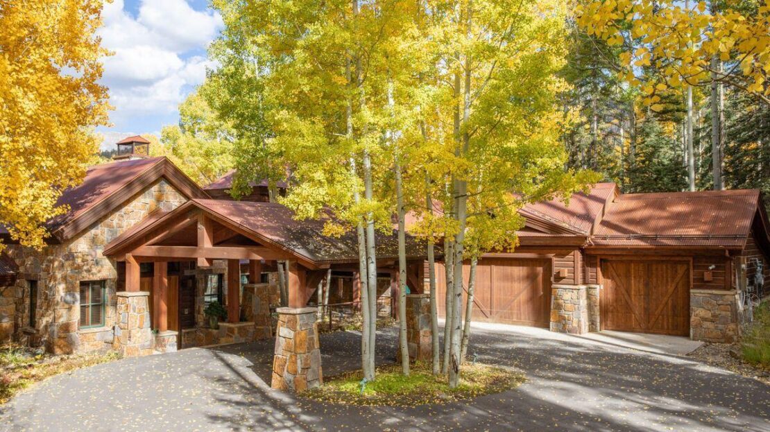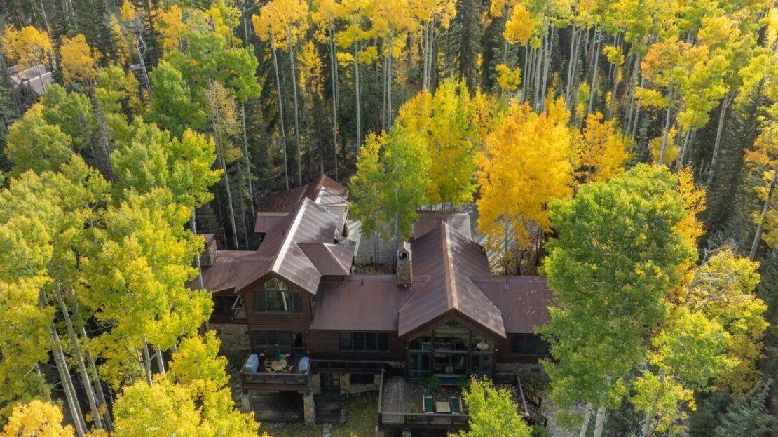 An early example of mountain modern architecture, this over 7,000sf home sits on 2.28 private acres at the very end of coveted Autumn Lane. A large great room opens on to the expansive decks as well as the billiards room. Beyond the great room is the formal dining room, separated by a woodburning fireplace. An impressive gourmet kitchen includes a spacious family sitting area and connects to a year-round outdoor room which is screened or glassed in depending on the season and boasts a wood fireplace. The primary suite is located on a completely private second floor with its own staircase and dual bathrooms including a large tub & steam shower.Additionally on the main level is the media room and a large office with powder room which could easily be converted into a 6th bedroom.