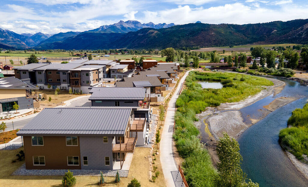 There are only three duplex units left on the River! Premier three bedroom townhouse on the river. These mountain modern condominiums and duplexes range from 2 to 3 bedrooms and include 2-car garages. They also boast alpenglow vistas to the east and evening sunsets dancing across the river to the west. Natural textures are complemented by warm, neutral accents for the perfect blend of polish and comfort. Walk, bike, or jog along the recreation path that leads from Riverfront Village to downtown dining and shopping options as well as Ridgway State Park and Ridgway Reservoir. Nestled in the Uncompahgre Valley ringed by the Cimarron Mountains, call Ridgway Home