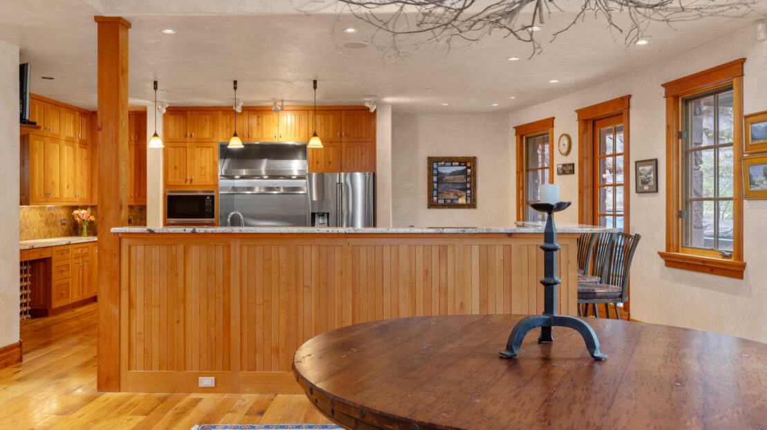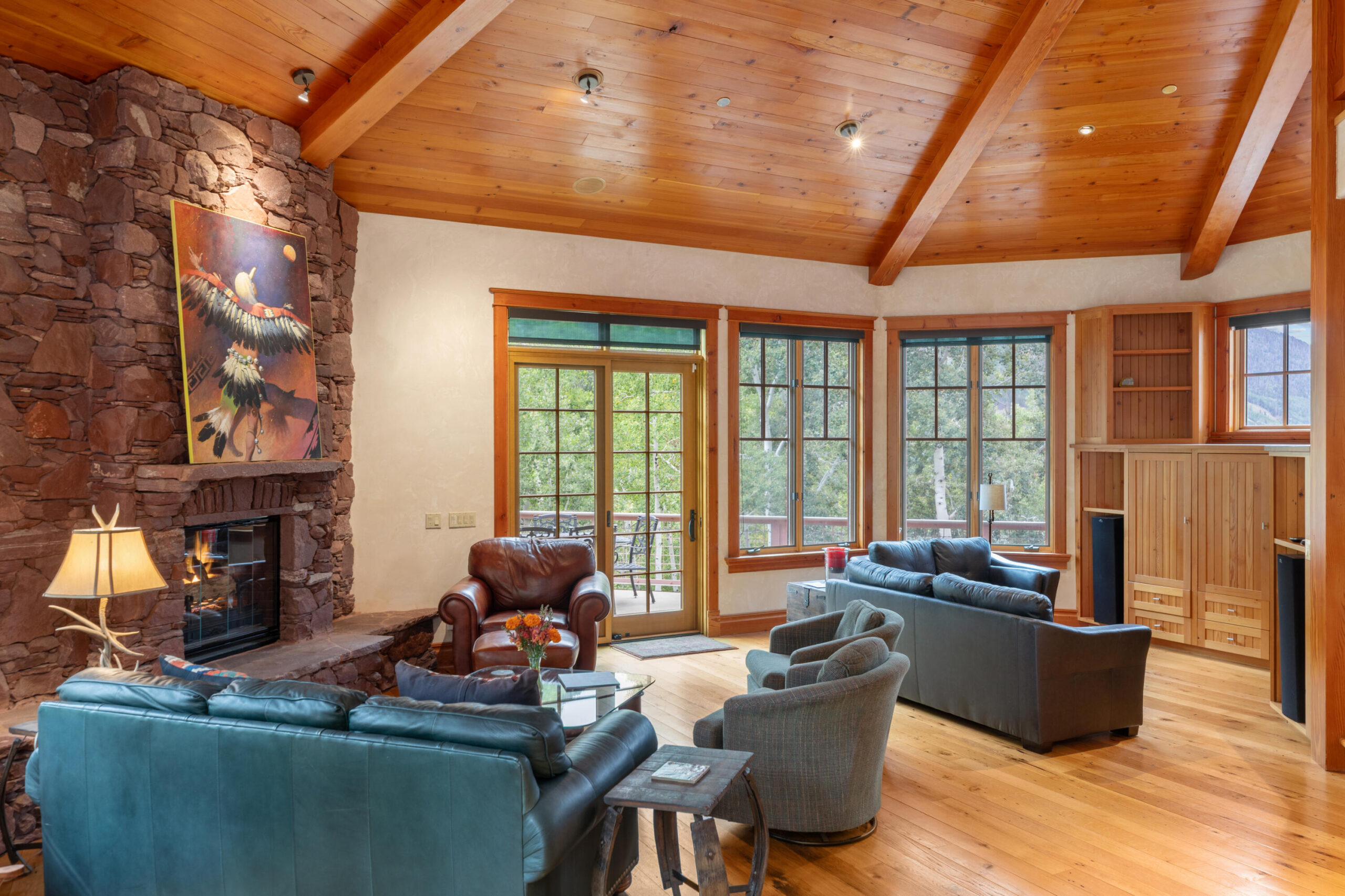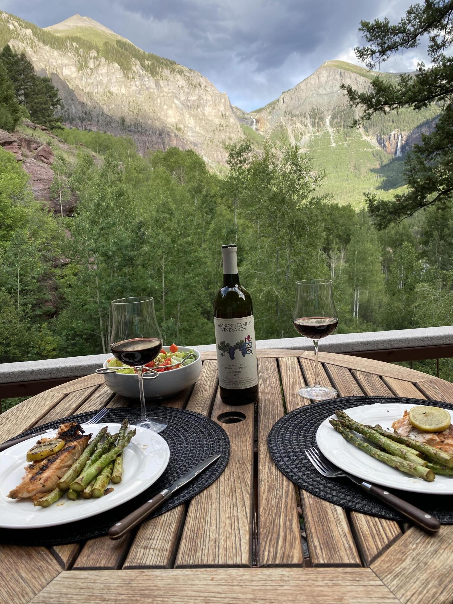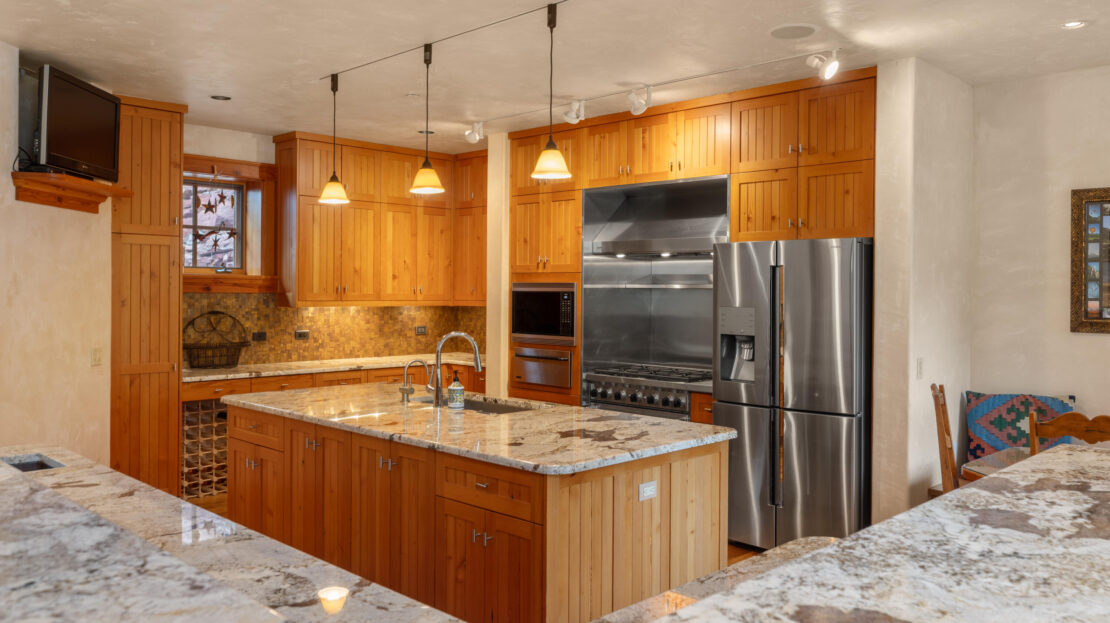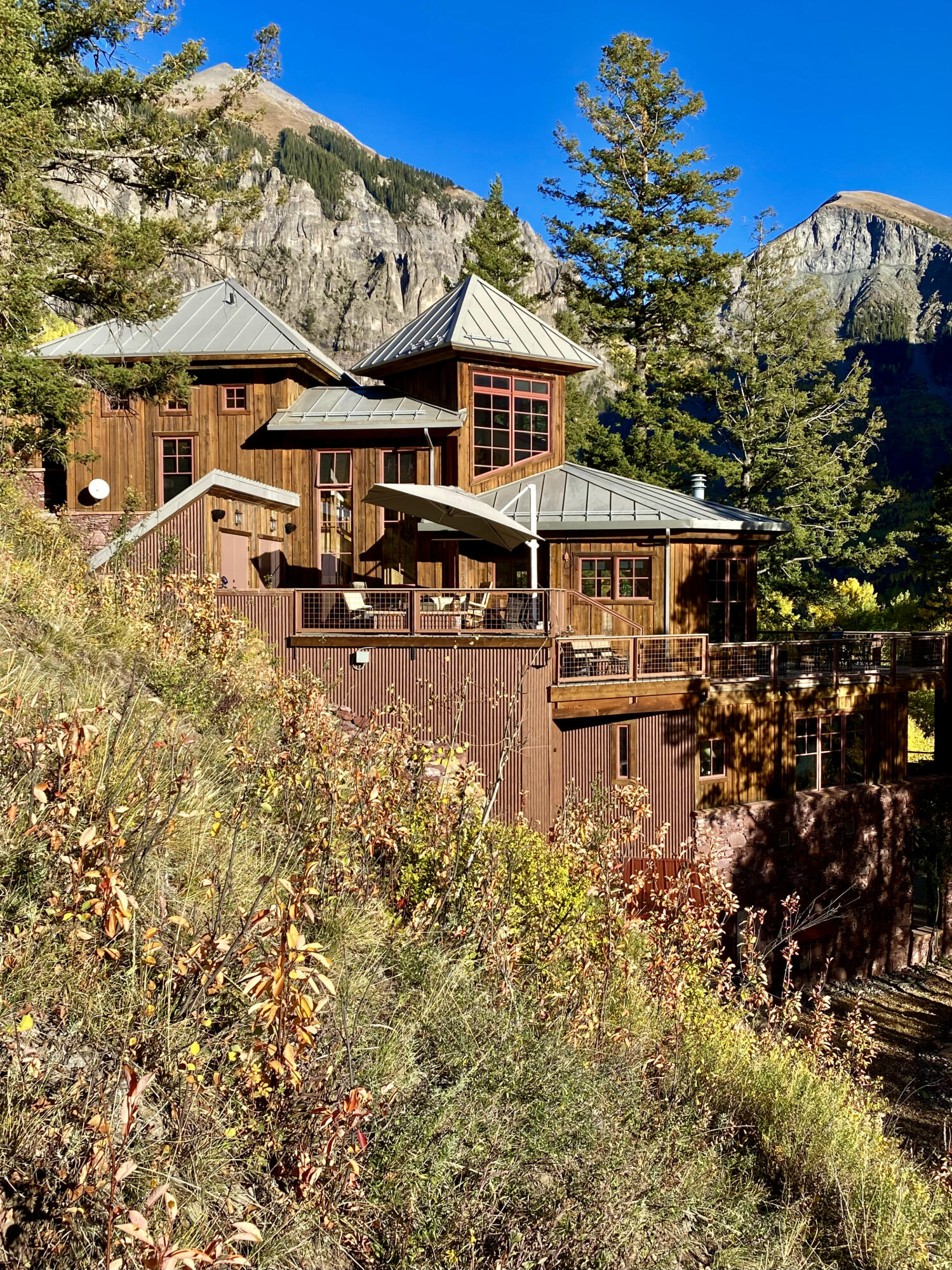A product of years of design work and careful craftsmanship, Dream Catcher is one of the most unique residences in the Telluride Valley. Built into sandstone cliffs and set on two lots with just under five total acres, the house tumbles down the mountainside following the path of the private waterfall directly to its east. Designed as a retreat that brings the outside in, the home offers unique and beautifully framed views of Telluride’s valley from every room and was built with recycled lumber native rock taken from the site. Wrapped by over 2000 sq. ft. of open decks with a spacious living area, the property is perfect for entertaining. Guests have views east to Bridal Veil, Ingram and several other seasonal waterfalls and west over Telluride. Evenings can be spent enjoying the alp