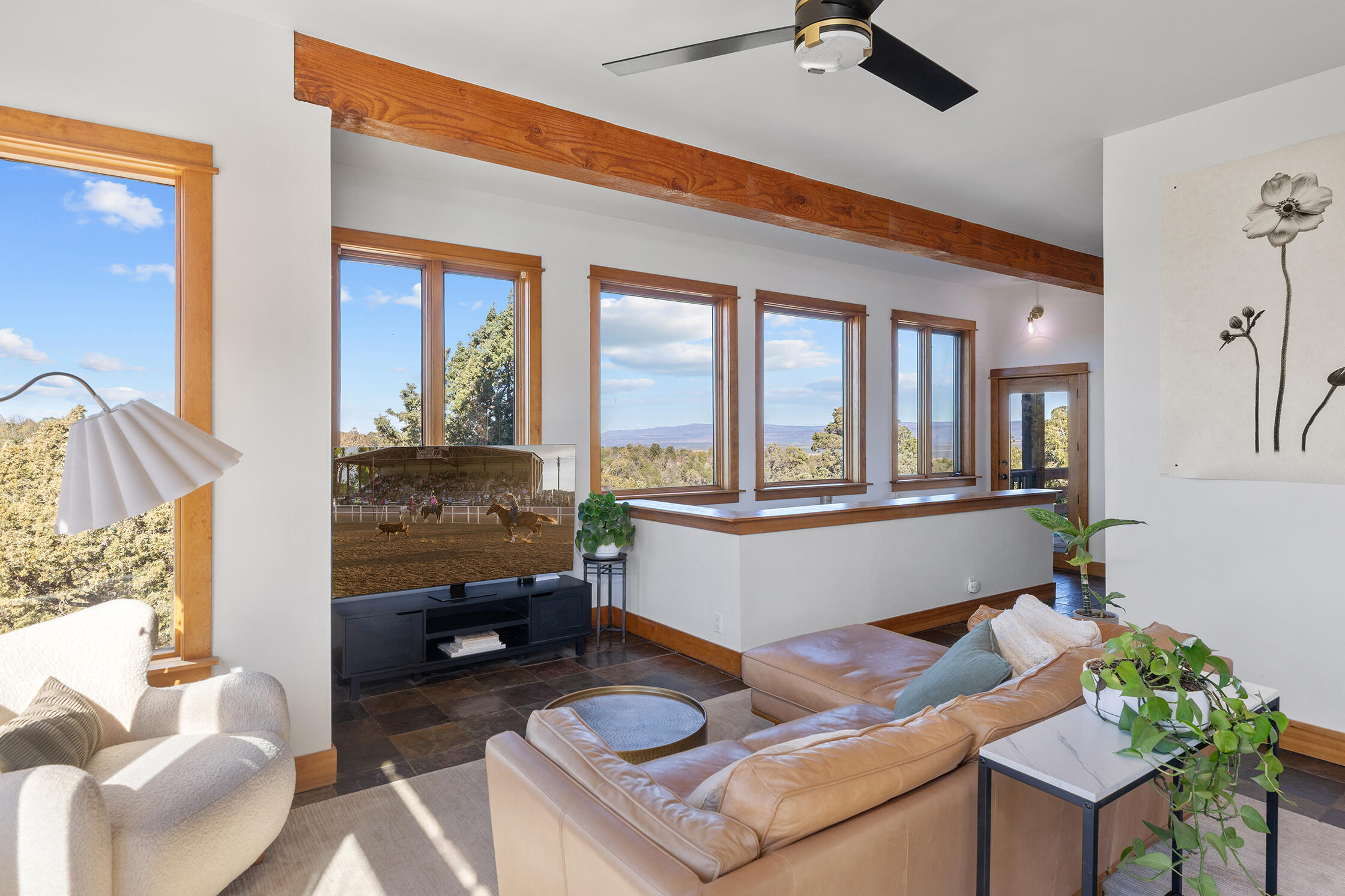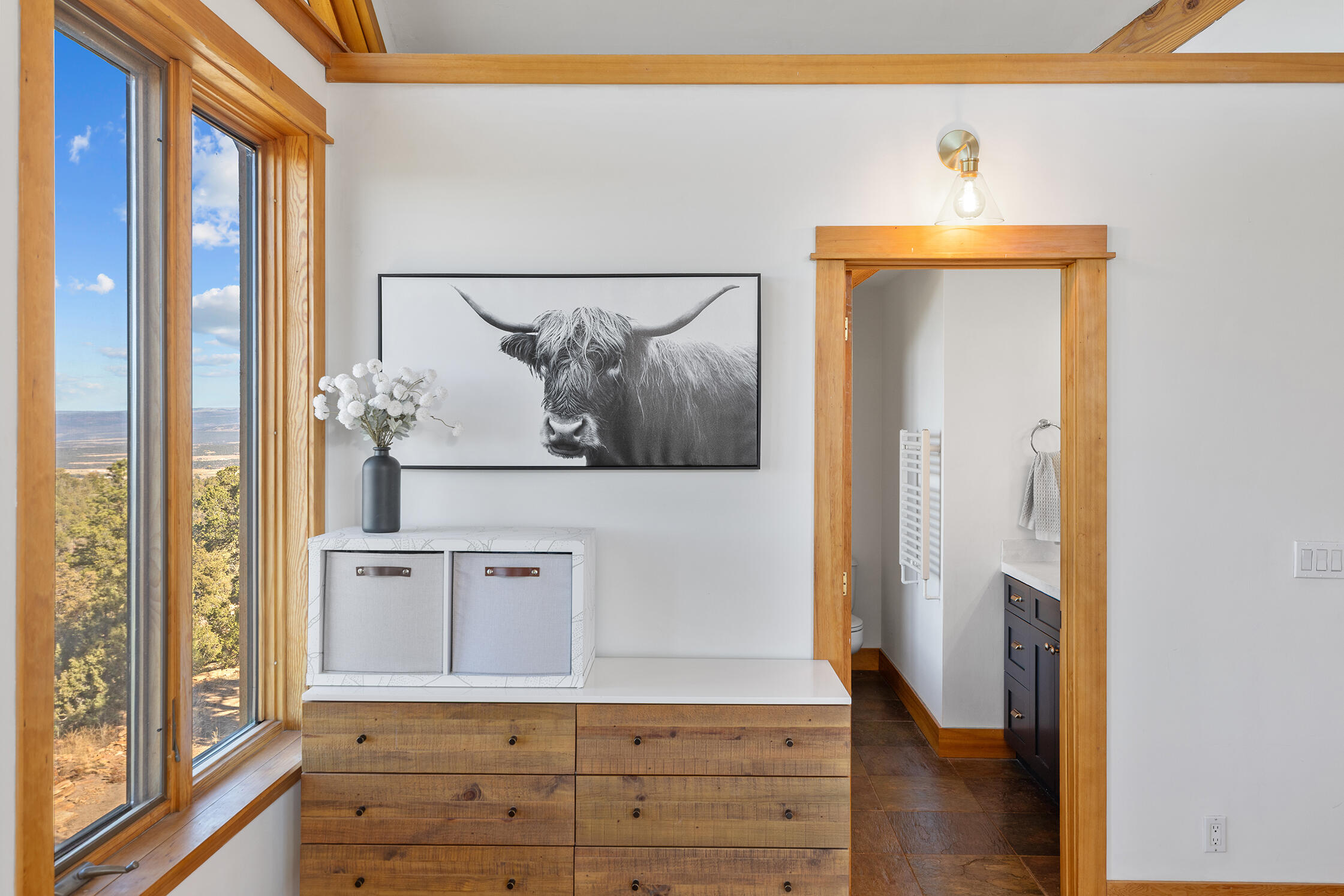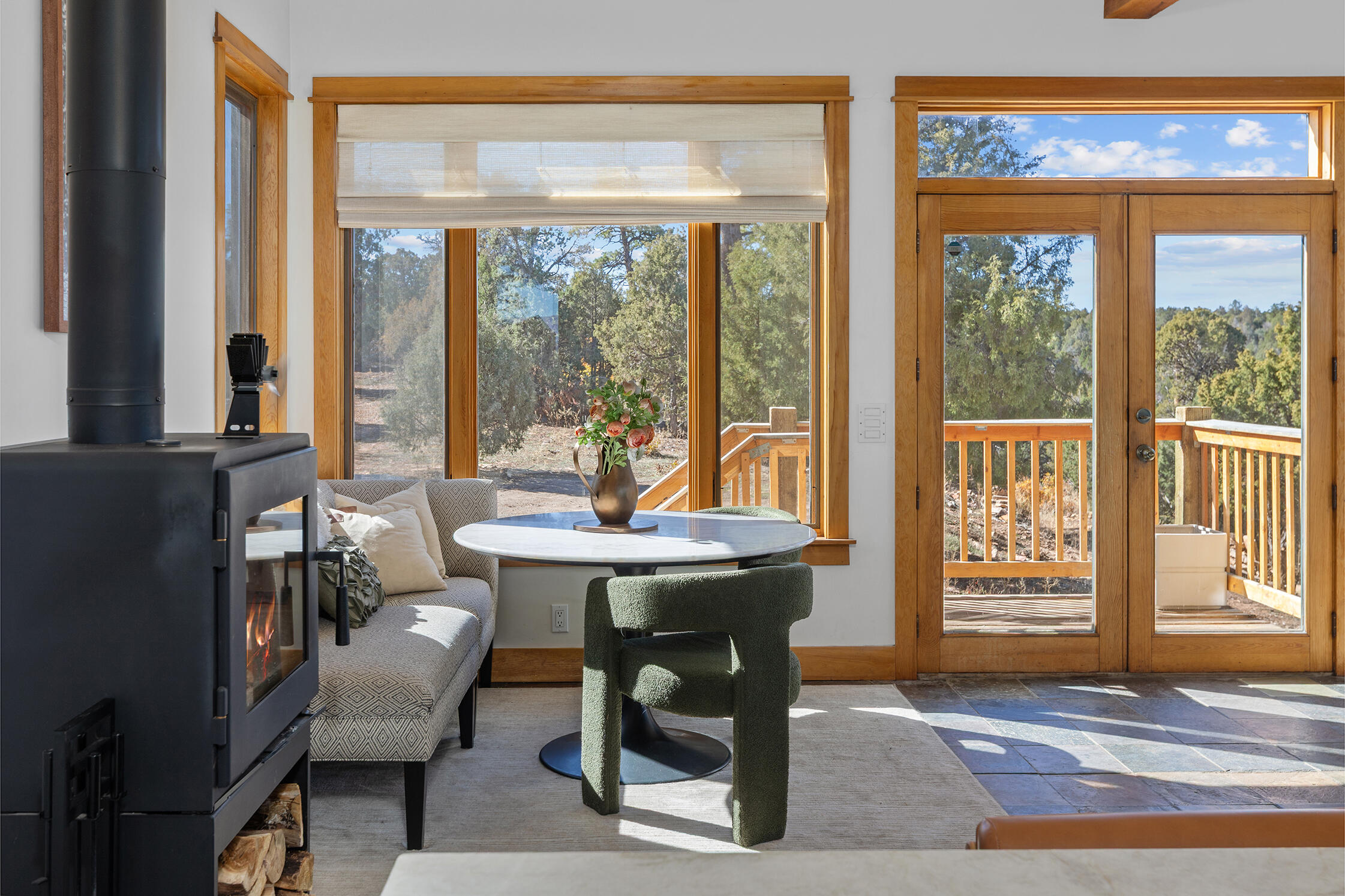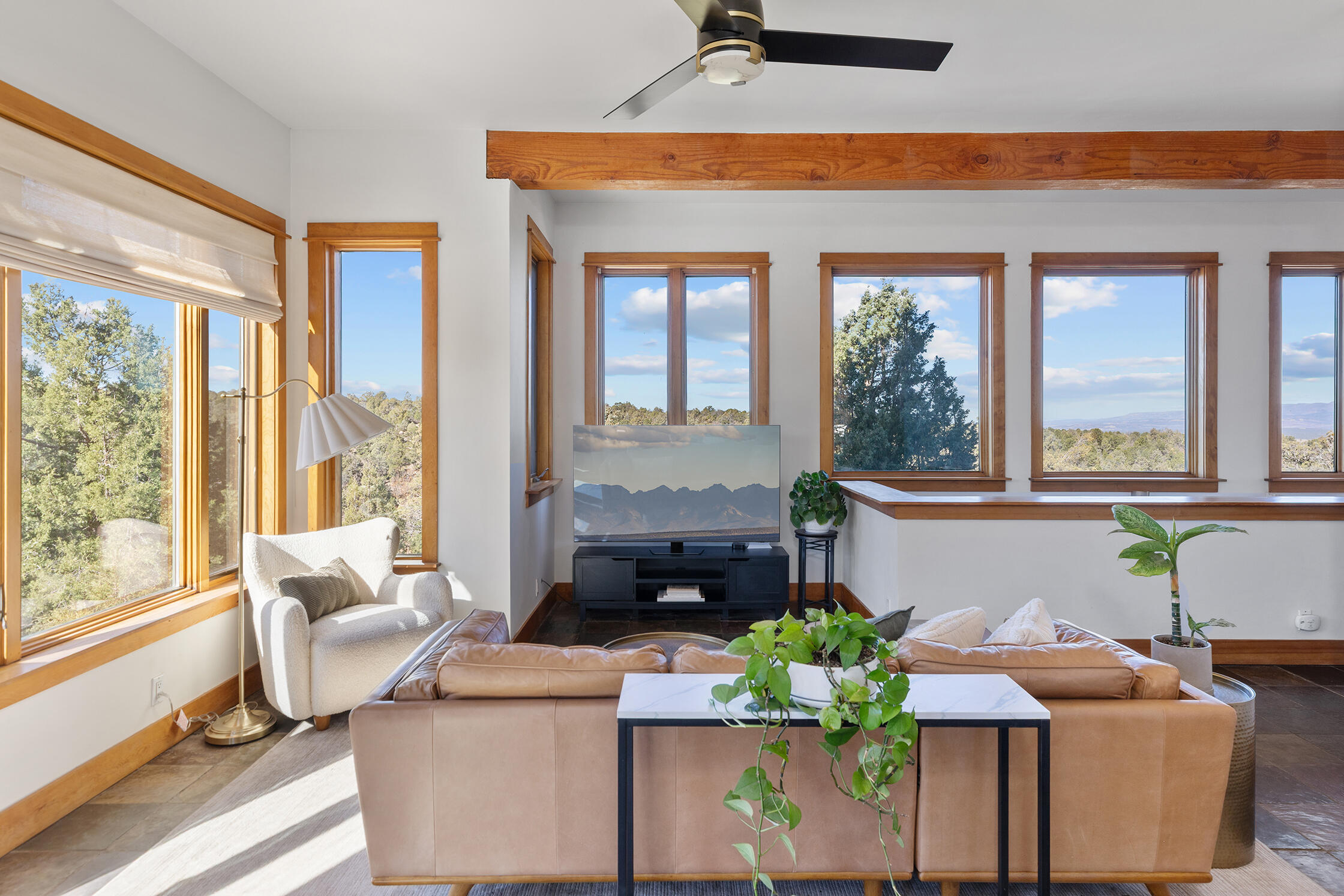 Custom home on 40 acres set in juniper and pine forest, offering unmatched privacy and freedom. Wrapped with windows, this home has incredible 360-degree views of the surrounding mountains including Lone Cone, the La Sals, and Sneffels Range. This private mesa retreat has ample solar exposure pooling in the sunshine all day long creating a light and warm atmosphere. This home has a newly remodeled kitchen, with open living and dining and new wood stove flex room and half bath on the main level. The upper level offers a spacious primary suite with vaulted ceilings and a wall of windows showcasing colorful sunsets to the west along with two other bedrooms great storage and 2 bathrooms. This is a great home on a private lot, a must see, call for a tour today!