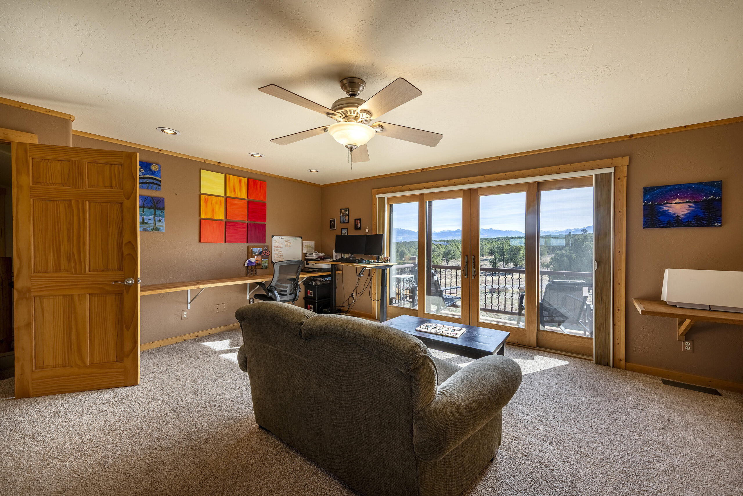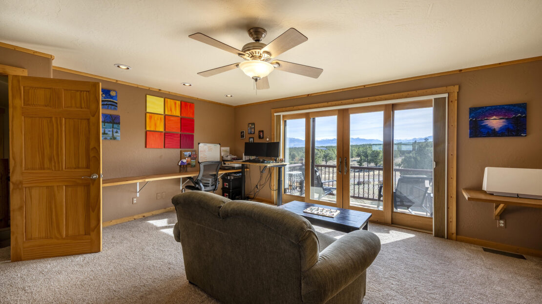 Beautiful 40 acre parcel with a two bed, three bath home, oversized attached two car garage and adjacent large shop with additional RV covered parking and small cabin ready to be improved. The property itself has undergone extensive fire mitigation and clearing to open up incredible mountain views. There are nearly 5 miles of private trails throughout the parcel along with abundant elk and other wildlife. There is power and water to a garden area, a large workshop with 200 amp power, a cabin with power, and a covered RV parking area with full hookups. The main house has a large master suite and loft area perfect for a home office.