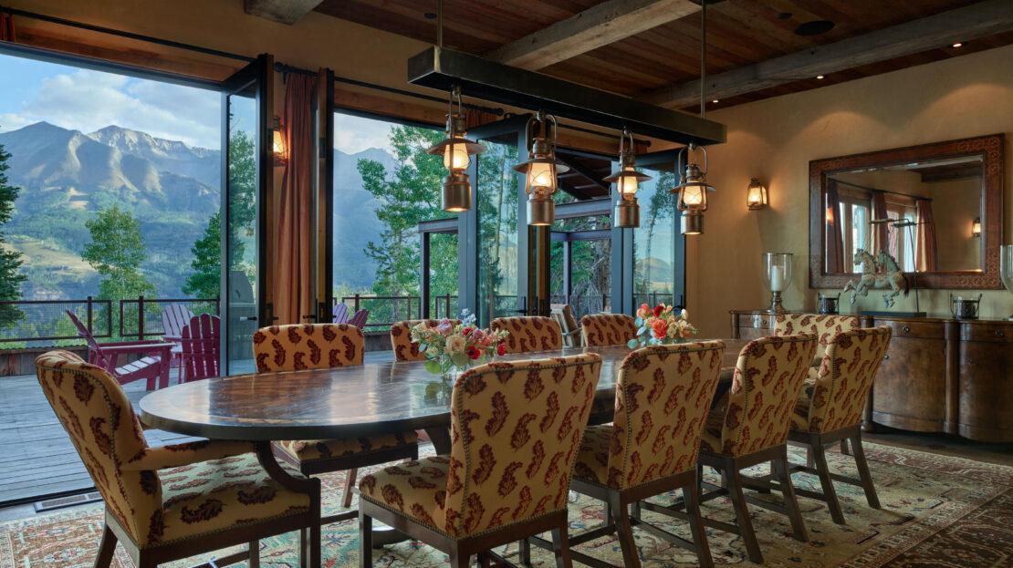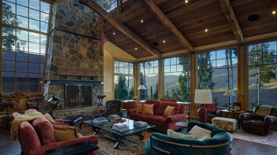Strategically set on a premier ski-in/ski-out site with awe-inspiring views of surrounding peaks, this One Architects-designed estate is a masterwork of rustic yet refined design, pairing timeless mountain materials with striking contemporary lines. Sunlit spaces framed by reclaimed timbers flow to inviting living, dining & kitchen areas. Locally-quarried stone, rusted metal accents & soaring interiors define its 16,000+ SF. The top-floor suite offers dual baths, outdoor shower & sitting room with sweeping views, while multiple suites, bunk rooms, theater, gym & game room open to a 4,000-SF indoor sports court–perfect for pickleball / basketball. A heated walkway leads to a stone guest house with seamless ski-trail access, creating a rare multi-generational alpine retreat near the Gondola