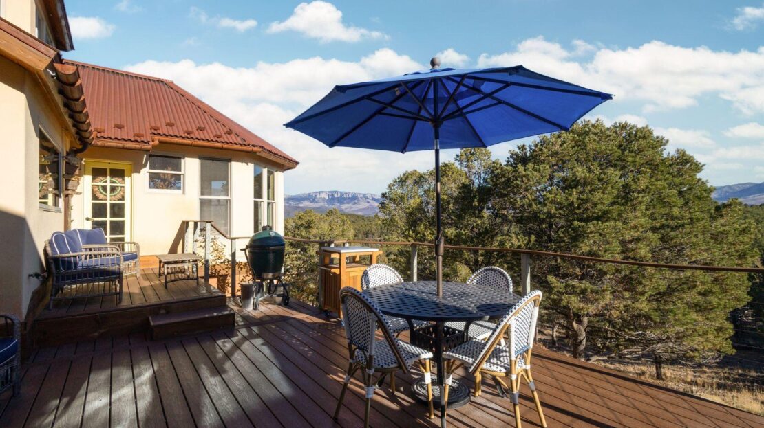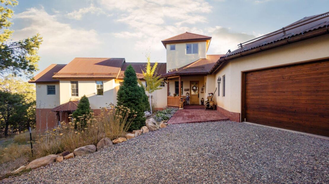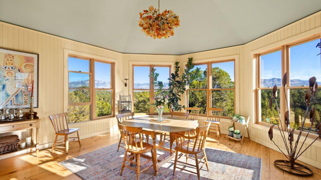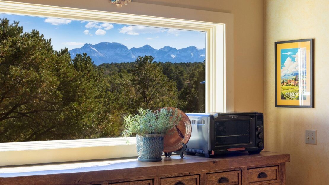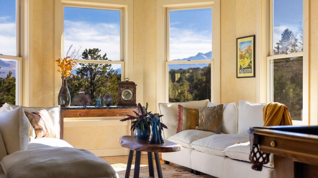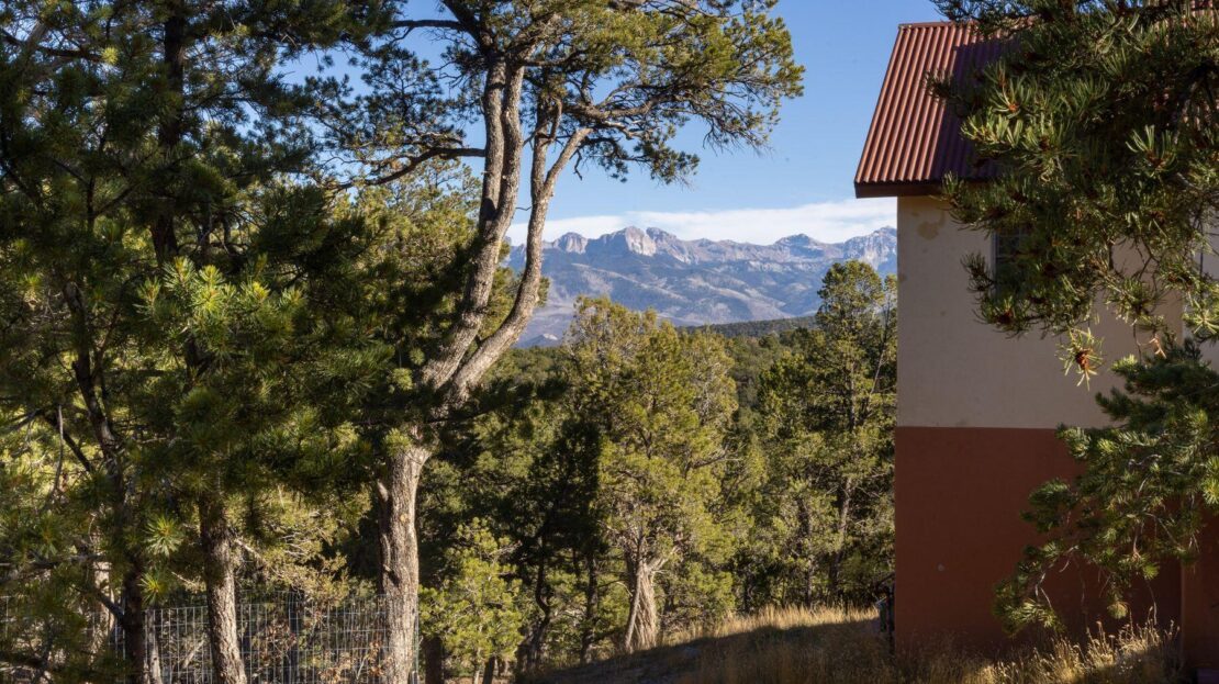 Private Loghill Mesa retreat on 4+ secluded acres with uninterrupted views of Mount Sneffels and the Cimarron Range from most every room and two income generating quarters. The 4,840 sq ft custom main home features 3 bedrooms plus flex spaces, vaulted ceilings, a two-sided wood-burning fireplace, a European-style kitchen with walk-in pantry, and heated wood floors. The main-level primary suite enjoys panoramic views, dual closets, and a spa-like bath. The lower level includes a private suite with full kitchen, bedroom, bath, and parking, plus an additional guest suite. A separate income-producing guest house sits above a two-car garage. With close proximity to Divide Ranch & Club, this serene property offers unmatched privacy, views and access to skiing, hiking, and nearby hot springs.