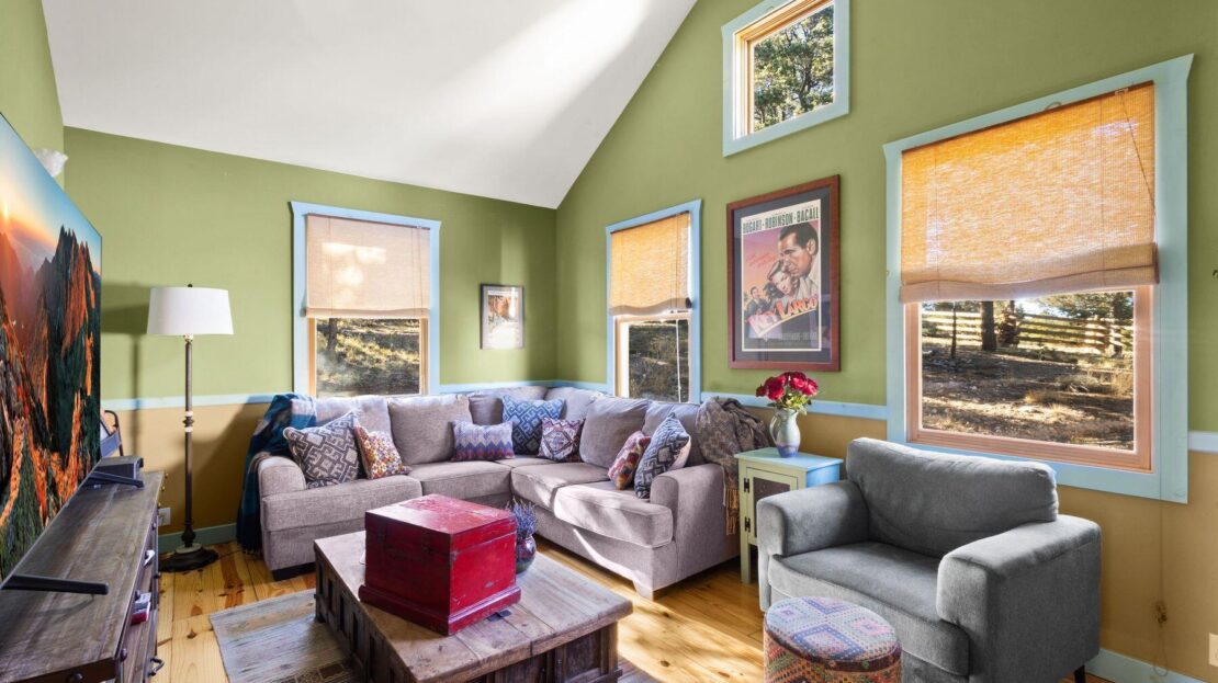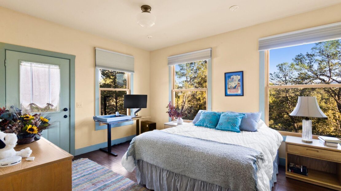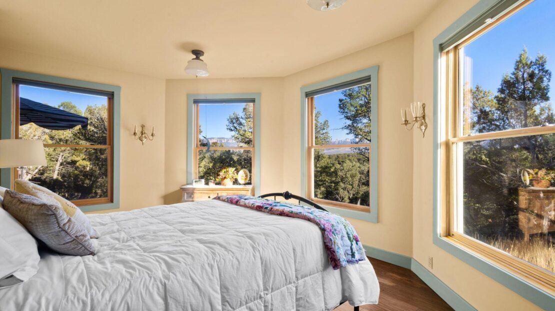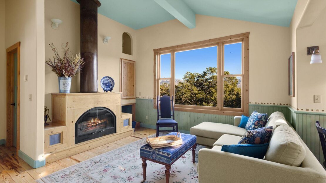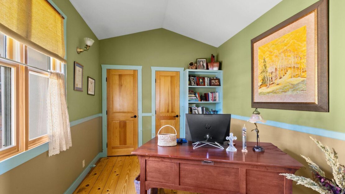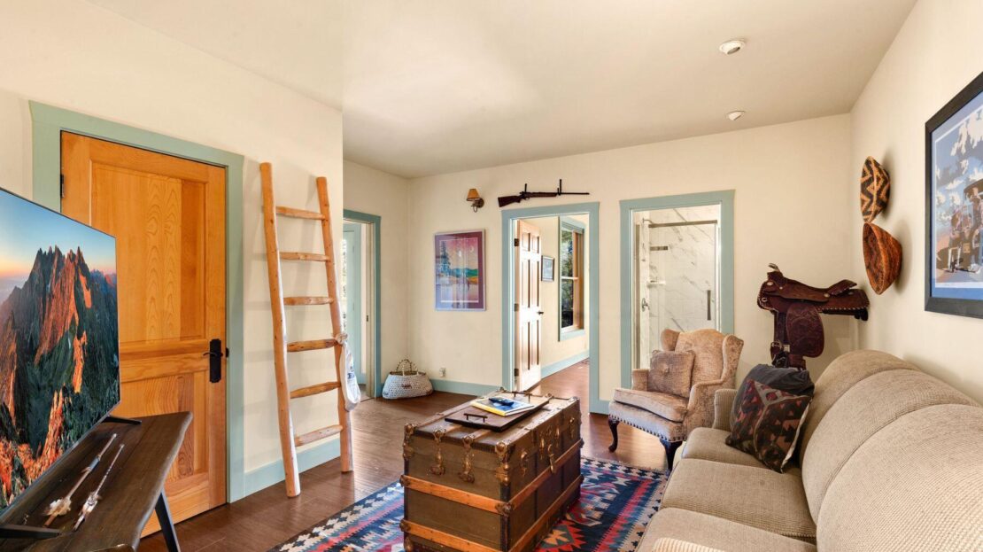 Private Loghill Mesa retreat on 4+ secluded acres with uninterrupted views of Mount Sneffels and the Cimarron Range from most every room and two income generating quarters. The 4,840 sq ft custom main home features 3 bedrooms plus flex spaces, vaulted ceilings, a two-sided wood-burning fireplace, a European-style kitchen with walk-in pantry, and heated wood floors. The main-level primary suite enjoys panoramic views, dual closets, and a spa-like bath. The lower level includes a private suite with full kitchen, bedroom, bath, and parking, plus an additional guest suite. A separate income-producing guest house sits above a two-car garage. With close proximity to Divide Ranch & Club, this serene property offers unmatched privacy, views and access to skiing, hiking, and nearby hot springs.