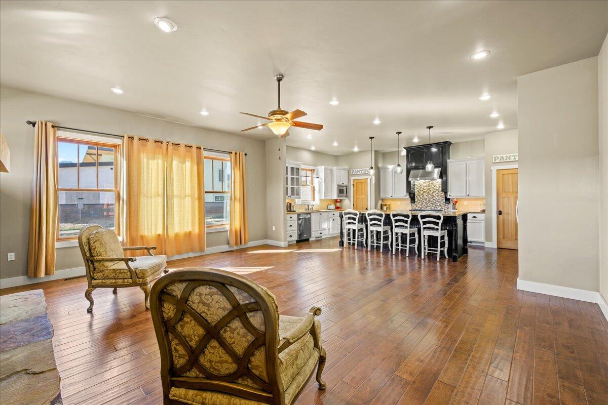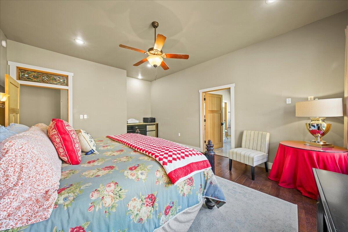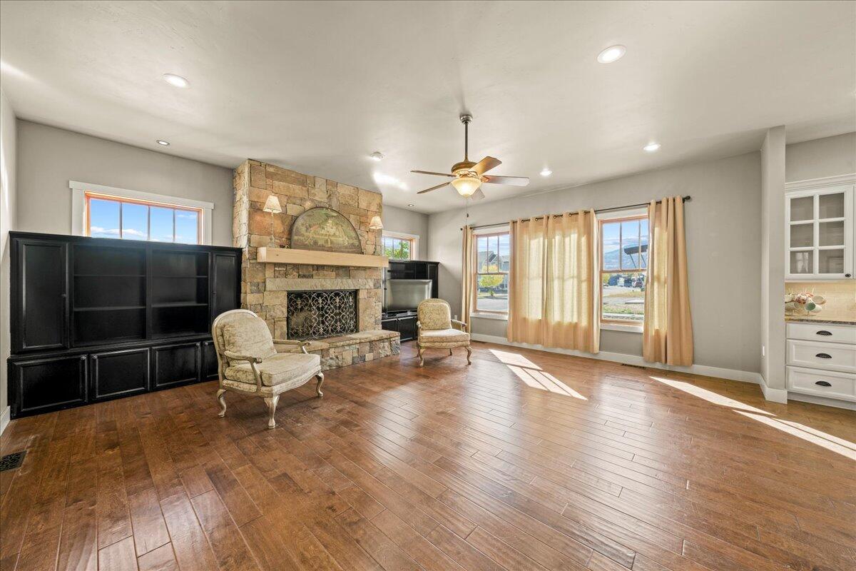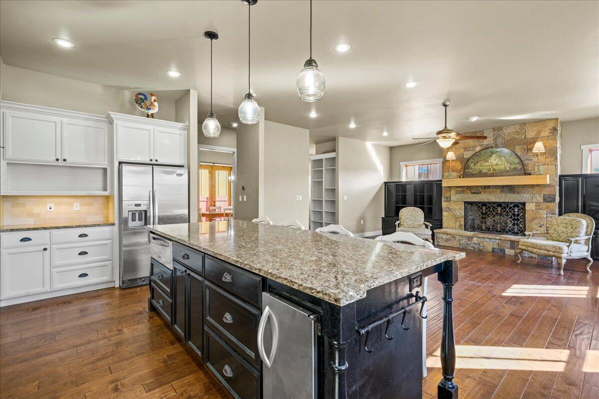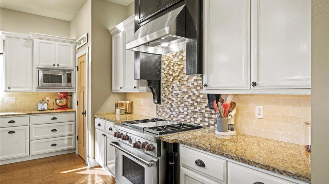 Custom Home in Premier Ridgway Neighborhood Located on a desirable corner lot, this spacious custom home offers mature landscaping, a fenced side and backyard, and inviting outdoor living spaces. The gourmet kitchen is a true highlight, featuring a 36” Wolf duel fuel range with oversized, stainless steel Wolf range hood and complete suite of KitchenAid stainless steel appliances, including refrigerator/freezer,dishwasher, microwave, warming drawer, and ice machine. A large center island, granite countertops, custom cabinetry, and elegant built-ins make this kitchen as functional as it is beautiful. Generously sized bedrooms all include walk-in closets, while the versatile 4th bedroom/bonus room provides abundant storage and can serve as a recreation room, guest suite, or office.