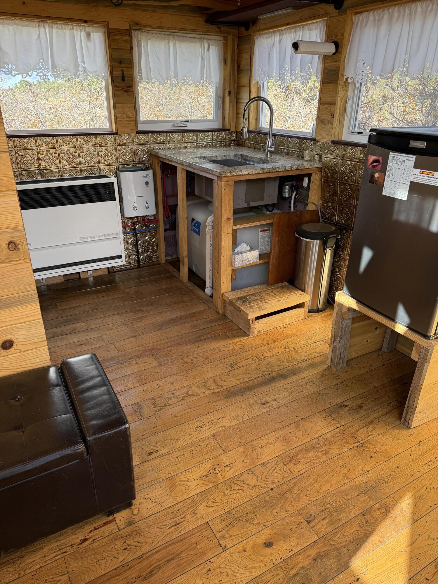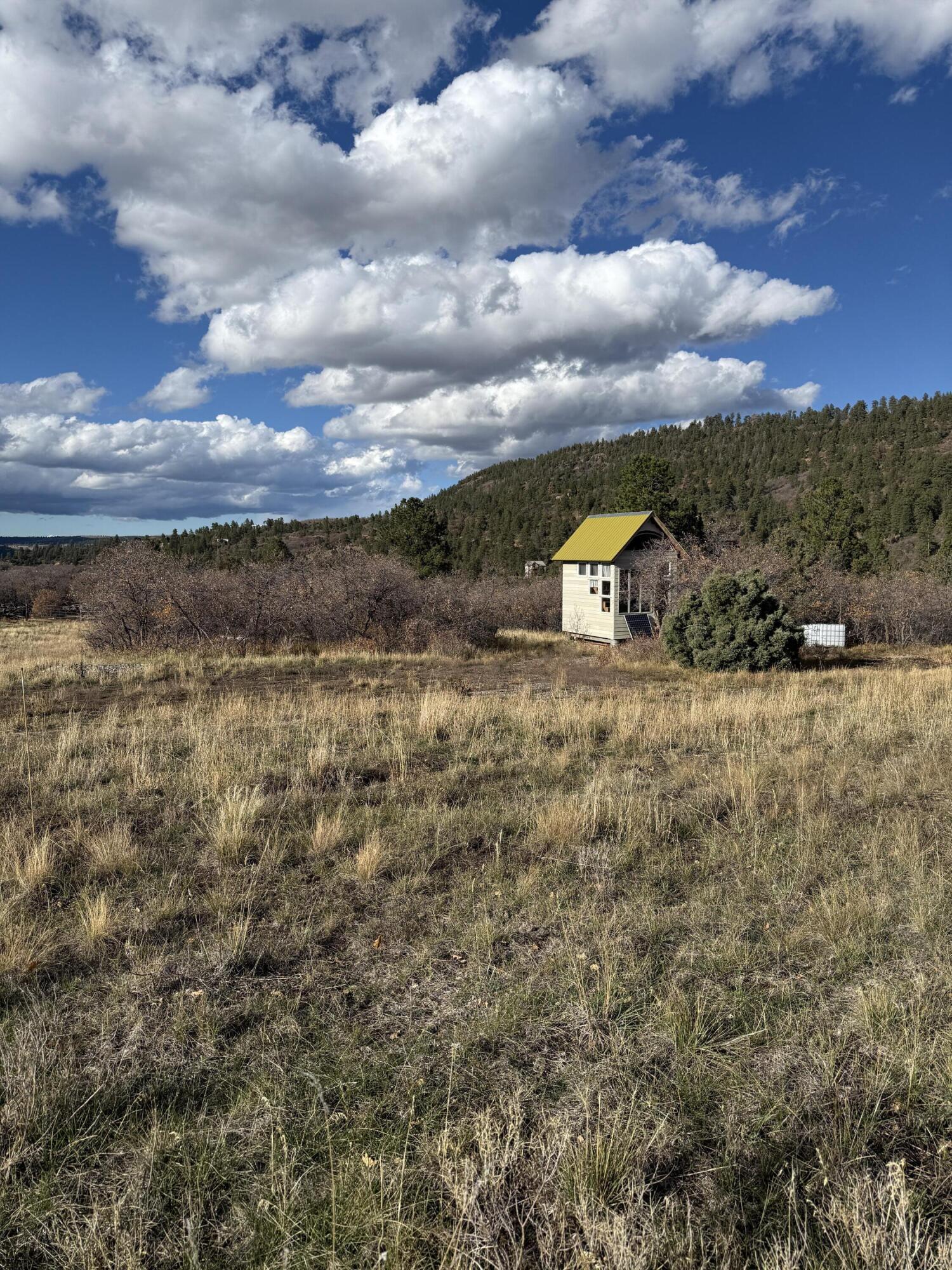 Alder Canyon Ranch, The 47.72 acres encommases the entire Alder Canyon from rim to rim. With almost 400 feet of both sides of Alder Creek river frontage. These are Brook trout and Cutthroat trout Blue Ribbon waters. Some of the largest old growth Blue Spruce and Ponderosa Pine trees to be found in the great state of Colorado. NO HOA, NO covenants! Perfectly situated just minutes off of Hwy 62 and equal distance from Telluride or Ridgway, a pleasant scenic 35 mile drive to either. There is a super comfortable Tiny home that is the tightest, warmest and best built little home to be found in the area. This fine little abode is the definition of ”Good Bones”. Complete with a travertine tile shower, A nice functional kitchen, a living room area with giant south facing windows.