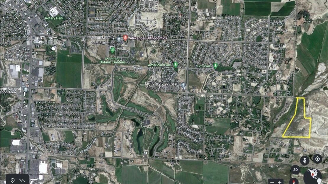 Calling all Developers, Home Builders, Land Bankers, and Farmers! This 37.21 acre parcel boarders the City of Montrose, but resides in the county. The land has no restrictions and comes with water rights which make for great farming opportunities, water tap, gas lines, electric running through three commercial transformers, and sewer lines are accessible to tie into on north side by the road. It is surrounded by incredible San Juan Mountain views and multiple higher end neighborhoods. This land is only a few minutes from Bridges Golf Course, Montrose Airport, and everything Montrose has to offer. Annexation and zoning are ready according to whatever a developer may need. Use it as a land bank for future generations or create your own private residence with a pond. Call to find out more!