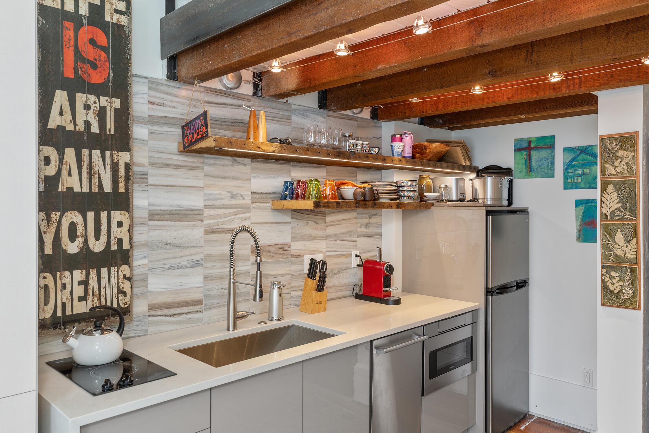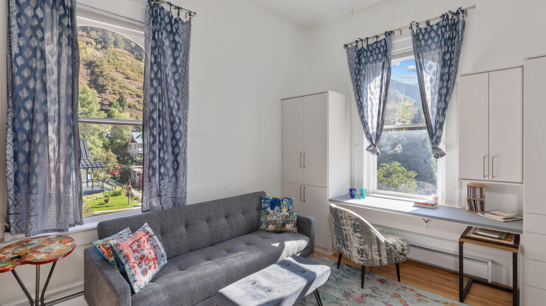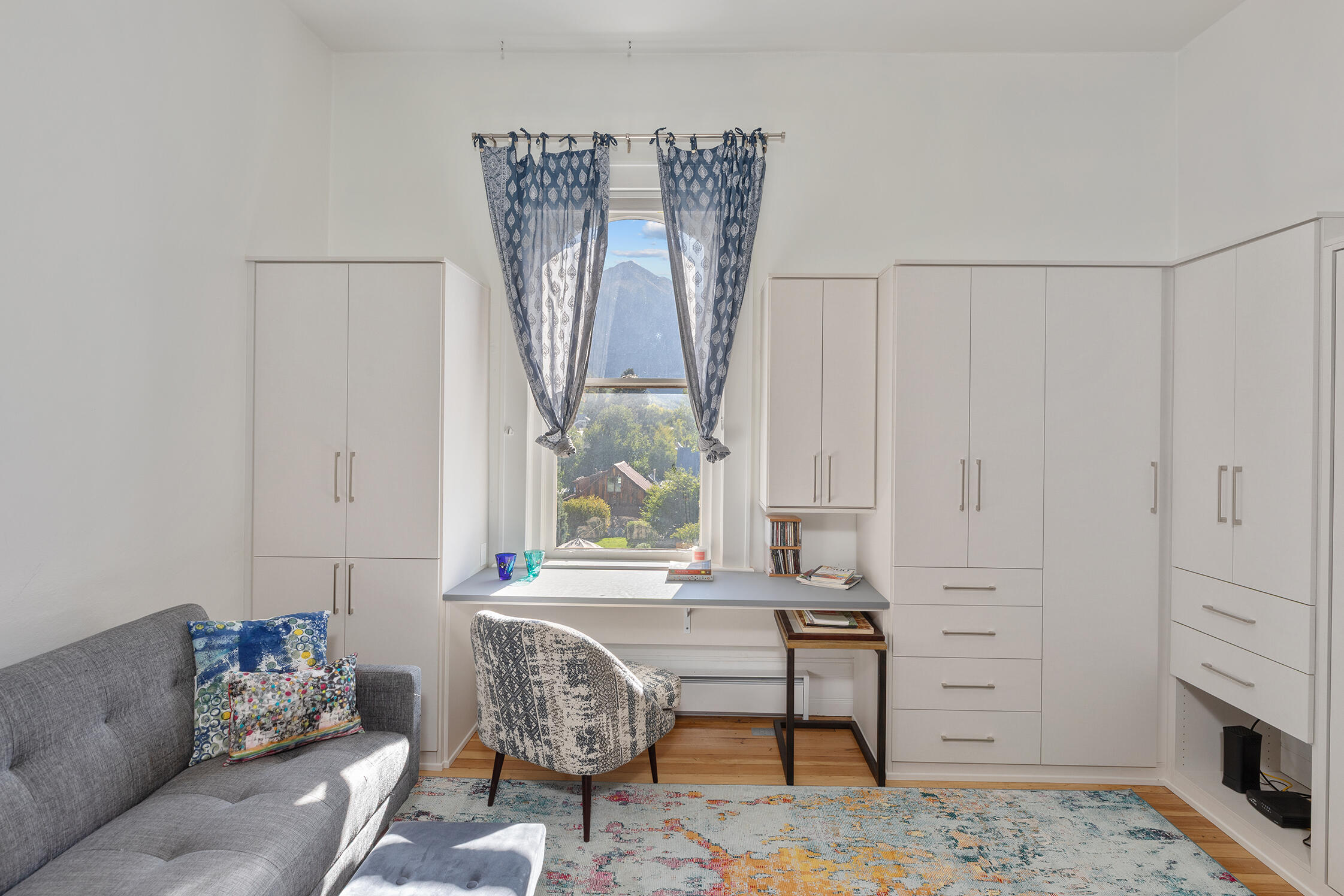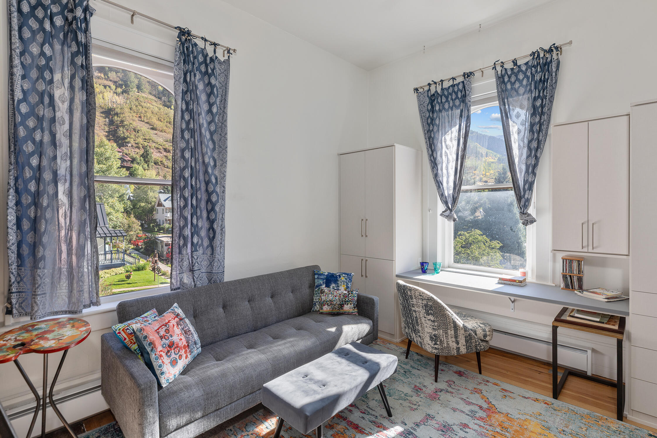 Miners Union #3 offers a rare blend of commercial and residential zoning in one of Telluride’s most distinctive historic buildings. Tall ceilings and large windows fill the studio with light and frame striking views of Ajax Mountain, while the building’s character adds a sense of history and charm. The space has been thoughtfully remodeled with built-ins, Murphy bed and loft to maximize comfort and efficiency. Just steps from Main Street, this unique property provides both convenience and versatility in the heart of downtown Telluride.