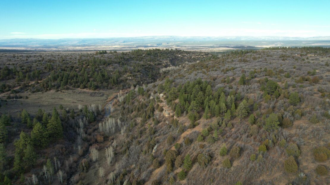 What is so special about this property? It is one of only two that has the live creek running through! 37.1 acres with huge Ponderosa Pines, Pinions and Oak with gorgeous mountain views. Abundant building sites to choose from, all very private and peaceful. All kinds of wildlife. A wonderful addition on the land is a vintage school bus with living space. It includes a wood burning stove, a futon for sleeping, hardwood counters, cabinets, red leather couch, also batteries and solar panels recharge controller, solar systems installed & ready for peripheral wiring, and the best part….it is mouse proofed! Perfect for glamping or staying in while building. It feels like you are in the Colorado wilderness yet it is just 15 minutes to the charming town of Norwood for all your amenities and