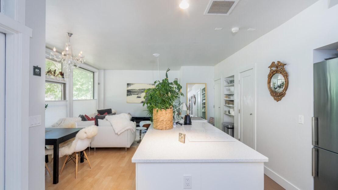 Welcome to this comfortable, cozy renovated two-bedroom, two bath, one-story flat on the west end of Telluride. This minimalist condo features simplefinishes with an artist’s touch, creating a bright, contemporary, and clean living space. Ideally situated, just steps away from ski lifts, trails, grocerystore, and the town bus, providing easy access to Telluride’s abundant amenities without needing a car. The common area heated pool and hot tub are available year round. This flat is designed with an open layout, combining living, kitchen, and dining areas into one beautifully designed space and allows for easy access off Pacific Street with no common area hallways. The additional bedroom can be set up as rental lock off allowing flexibility for renting as a studio or two bedroom.